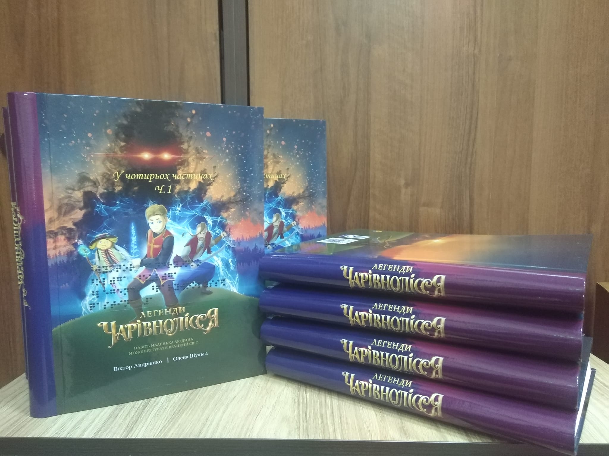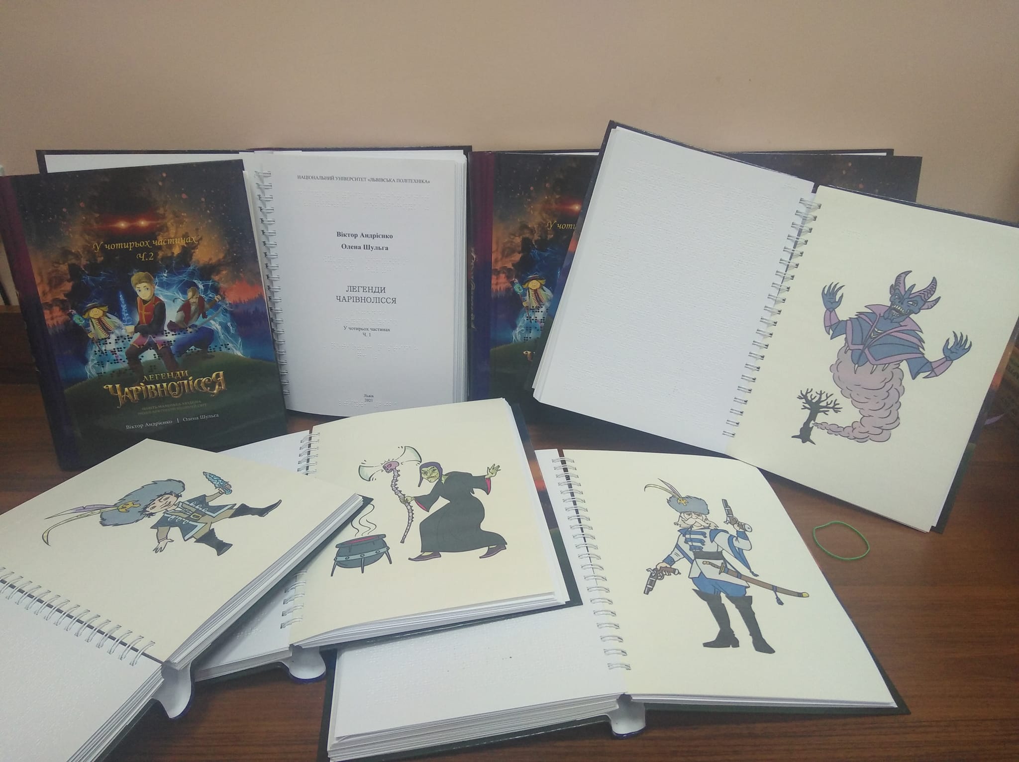 Результати проєкту: Незадовго до повномасштабного вторгнення у Київській міській державній адміністрації відбулася презентація етноповісті Віктора Андрієнка та Олени Шульги «Легенди Чарівнолісся», надрукованої рельєфно-крапковим шрифтом. Видання налічувало 4 частини в одному примірнику, тираж його складав 30 примірників (120 книжок загалом).